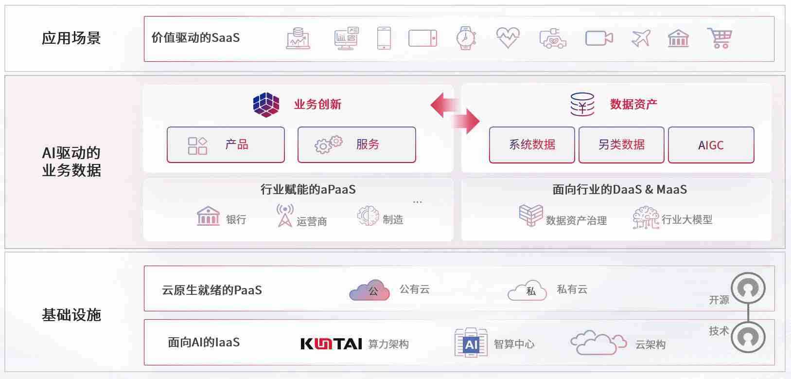 数字时代,,,围绕企业数字化转型的关键要素,,,,GG钱包数码开创性的提出数云融合战略和技术体系框架,,,,着力在云原生、、数字原生、、、、AI原生和信创产业上架构产品和服务能力,,为处在不同数字化转型阶段的快消零售、、、、汽车、、、、金融、、医疗、、政企、、、、教育、、、、运营商等行业客户提供泛在的敏捷IT能力和融合的数据驱动能力,,,构建跨界融合创新的数字业务场景和新业务模式,,,,助力企业级客户建立面向未来的核心能力和竞争优势,,,全面推动社会的数字化、、、、智能化转型升级。。。。